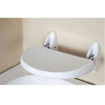Asiento plegable de pared para personas con discapacidad de color blanco.