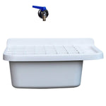 Fregadero-pilozzo de pared con práctico estante para guardarlo todo.