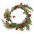 Corona de 28 cm con hojas de plástico verde/bayas rojas/piñas