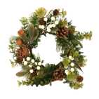 Corona de 30Cm con Tela Verde/Hojas de Plástico/Frutas Blancas/Piña/Campanas de Metal