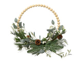 Ghirlanda moderna con palline de madera brillante, piñas y eucalipto para interiores H 10 x Ø 40 cm