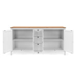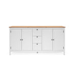 (2c) Aparador blanco de 4 puertas y 3 cajones con tapa de roble 180x40xh.90 cm (BERGEN51BI)