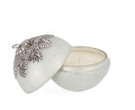 Esta vela está hecha de parafina de alta calidad, con un peso de 320 gramos. El recipiente está hecho de vidrio y metal, lo que le da un toque de elegancia y sofisticación. La vela se entrega en una caja de regalo, lo que la hace perfecta también como regalo.