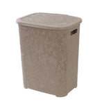 Cesto de ropa de plástico gris tórtola flor capacidad 50 litros.
