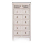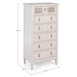 Cajonera estrecha de madera con seis cajones Bianca EUNICE 56x36x h119 cm Especificaciones Estructura y patas en madera de abeto Color blanco, acabado a base de nitrocelulosa Trasera y cajones en MDF Cajón superior con...