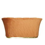 Sofá 2 plazas Argentario terciopelo óxido Características: Estructura de madera. Tapicería de terciopelo. Respaldo con costuras de rombos. Color óxido Milán 09. Fondo de color dorado. Sofá de 2 plazas. Medidas 150x85x70 h cm.