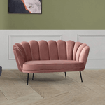 El sofá de dos plazas Orel de terciopelo concha rosa antiguo y patas negras es un mueble elegante que añadirá un toque de refinamiento a tu espacio vital. Con su exclusivo diseño en forma de concha y sus patas de hierro negro, este sofá captará la atención de todos sus invitados.