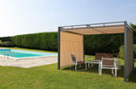 Cenador Maine con pérgola de acero de 3x3 cm con cortinas laterales
