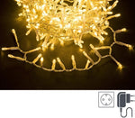 Cadena Snake 400Led, Luz Classic, Tamaño del Led 5Mm No Reemplazable. Cable Transparente, Longitud Total del Cable 11Mt, Longitud del Cable de Alimentación 3Mt, Longitud del Cable de Luces 8Mt, Distancia entre Leds 2Cm. Con Enchufe Schuko. 8 Juegos de Luz con Memoria. Para Uso Interior-Exterior Ip44. Con Caja de Color. Con Transformador 31V3.6W.