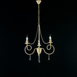 Araña de hierro marfil tres luces decapè decoración y diamantes de imitación 50x H67 cm
