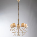 Cinco luces Gold Iron Landelier Efecto de tela Paralumi 60x H58 cm