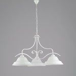 Araña clásica en hierro blanco plateado con vidrio blanco tres luces 30x h53 cm