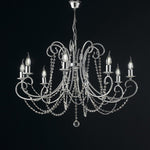 Araña de hierro cromado ocho luces con pedrería 74x h58 cm