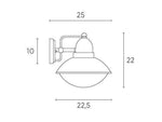 Estructura de aluminio fundido a presión. Contrabase y accesorios para su fijación. Portalámparas de porcelana con casquillo E27. Adecuado para lámparas de bajo consumo. Altura máxima de la lámpara: 160 mm. Lámpara excluida. Fuente de alimentación de 230V. Clase de protección: IP44 Potencia máxima de la lámpara: 60W