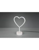 La lámpara de sobremesa HEART de Trio Lighting está compuesta por una base redonda en plástico acabado blanco y un difusor con LED integrado en forma de corazón, interruptor ON/OFF incluido.