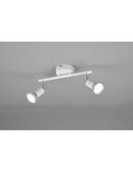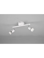 La barra PARIS de Trio Lighting se compone de un plafón redondo de metal , un brazo lineal y 2 focos orientables , todo en blanco mate .