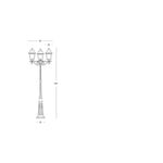 Farola estructura 3 luces en aluminio inyectado negro difusores en cristal transparente