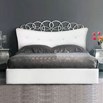 Cama doble blanca con alimento acolchado en blanco y eco con diamantes de imitación