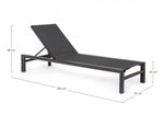 estructura de aluminio, con recubrimiento de polvo (poliéster). Asiento y respaldo tapizados en textilene 1x1. Respaldo reclinable (4 posiciones). tornillos de acero inoxidable. armar.