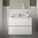 Mueble de baño suspendido lacado brillo blanco Claros90 con lavabo 2 cajones 90x45x56h