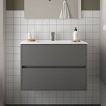 Mueble de baño suspendido Claros90 gris mate con lavabo 2 cajones 90x45x56h