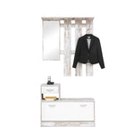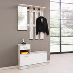 El armario de entrada vintage blanco es perfecto para organizar la zona de entrada con estilo. El modelo Rudolf está compuesto por una estructura y un frente en color blanco vintage, que dan un toque de elegancia al ambiente. Este set incluye un espejo, ideal para echar un último vistazo antes de salir de casa, 3 percheros cromados para colgar tus abrigos y chaquetas, un práctico cajón para guardar objetos pequeños y una solapa con 2 asas para crear un estante de apoyo adicional. Los tiradores cromados añaden un toque de refinamiento al armario. Las dimensiones del mueble son: ancho 100 cm, fondo 25 cm, alto 180 cm. Está elaborado con melamina de alta calidad, lo que garantiza una larga vida útil. El mueble armario se entrega en un kit para montar, pero gracias a las instrucciones claras y detalladas el montaje será rápido y sencillo. Añade un toque de estilo y funcionalidad a tu zona de entrada con el armario de entrada blanco vintage.