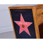 Madia en Brown Mango Wood 2 cajones y estantes visibles