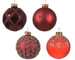 Adorno de Navidad de Vidrio Bola Brillante-Mate-Transparente Espalda de Fuego-Hoja-Control 4asst Color Rojo Navidad/Color ø 8cm