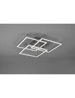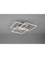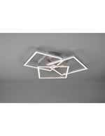 La plafoniera MOBILE del brand Trio Lighting presenta una struttura in metallo di colore nichel opaco composta da 3 diffusori quadrati orientabili in diverse direzioni.