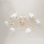 Luz de techo de hierro dorado de marfil seis luces de alabastro blancas White 95x52x H20 cm