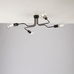 Luz de techo de hierro negro con decoración de cobre cuatro luces 57x44x H17 cm