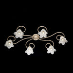 Luz de techo de hierro dorado de marfil seis luces putas en vidrio blanco 99x50x H17 cm