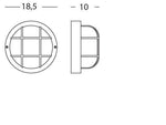 Lámpara de techo ovalada con estructura de termoplástico. Difusor de vidrio moldeado. Versión con jaula y estructura termoplástica. Altura máxima de la lámpara: 107 mm. Alimentación 230 V. Grado de protección: IP44 Potencia máxima lámpara: 40W