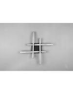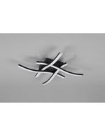 ROUTE di Trio Lighting è una plafoniera composta da piastra quadrata a soffitto, 4 bacchette ondulate in metallo intersecate tra loro a formare un quadrato hashtag di colore nero opaco e diffusori in plastica bianca.