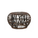 Mesa Pouf para al aire libre en ratán marrón dorado diámetro 65x H44 cm