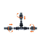 Le permite crear ramas en T para la tubería de cabecera del sistema.