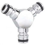 El divisor de tubería de metal con conexiones automáticas es perfecto para dividir la línea de riego y llevar el agua a dos puntos diferentes. Los tramos de tubería están conectados con accesorios automáticos en los extremos. Fabricado en latón cromado para garantizar solidez y resistencia en el tiempo. Compatible con el sistema de acoplamiento rápido Quick-Click que permite su uso con toda la gama Metal-Jet y racores de plástico.