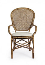 Rattan, colorido y antiguo. Termine con pintura de melamina. Cojín con tela de algodón. Se recomienda no exponer los muebles a la luz solar y el clima dirigido. Cartón sin cartón. Medidas = 55A - 62B - 96H - 47H1 - 65H2
