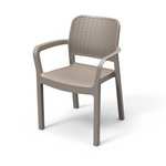 Asiento y respaldo caracterizados por un acabado que reproduce el tejido típico del ratán