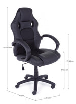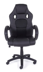 Sillón de oficina con brazaletes Racing en polipiel negra