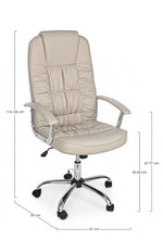 Sillón de oficina en Dehli Tortora Eco -Leather Caracteristicas de producto: base de metal cromada Ø60 cm Ruedas de nylon Asiento acolchado y trasero y de vuelta en el mismo momento Reposabrazos de metal cromados...