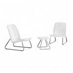 Conjunto de balcón Iowa El conjunto Keter está disponible en blanco. El producto estaba hecho de resina de alta calidad, con patas de metal. Ha sido especialmente diseñado para resistir los elementos del tiempo. Es...