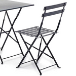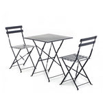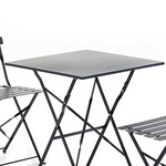 Conjunto balcón compuesto por mesa cuadrada de hierro color antracita de 60x60x69 cm y 2 sillas plegables ahorra espacio.