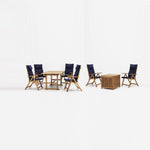 Conjunto de exterior en madera de acacia con cojines Material: Estructura: Madera de acacia Cojines: Poliéster Color: Estructura: marrón cojines: azul Dimensiones: 90cm X 146 / 200cm H. 75cm