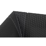 Hecho de plástico resistente a la intemperie, el material tiene un acabado de efecto ratán para los asientos, mientras que es un efecto de madera cepillada para la parte superior de la mesa. La función contenedora que realiza la mesa de centro te permite guardar cojines en los días de lluvia, guardar todo tipo de objetos para una opción extra de almacenamiento.