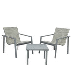 Salón exterior, compuesto por 2 sillones y 1 mesa de centro