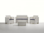 El jardín o salón exterior Nebraska es cómodo, en resina ya se entrega con cojines acolchados y una mesa de centro muy cómoda.