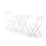 Conjunto balcón fabricado en hierro blanco, mesa cuadrada 60x60x69 cm y 2 sillas plegables ahorra espacio.