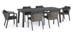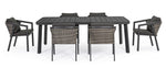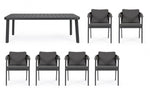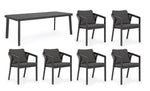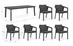 Conjunto mesa cordova antracita + 6 sillas Detalles técnicos: Estructura de aluminio pintado en polvo (poliéster). Asiento tapizado en fibra sintética. Cojines de asiento y respaldo desenfundables con tejido olefina (100% polipropileno). pies de mesa...