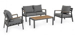 Salón de jardín Ernst antracita Detalles técnicos: Estructura de aluminio pintado en polvo (poliéster). reposabrazos y tapa de la mesa de centro en polywood (material compuesto de aspecto similar a la madera) 90% poliestireno 10%...